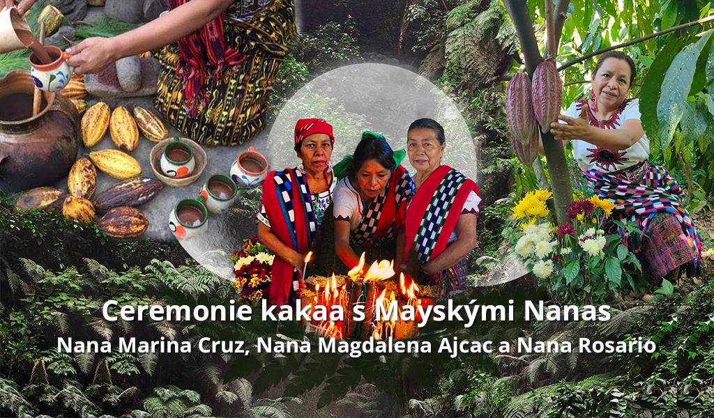 Zveme vás na jedinečné setkání, na tradiční kakaovou ceremonii se třemi Mayskými babičkami – domorodými duchovními průvodkyněmi a léčitelkami Nanou Marinou Cruz, Nanou Magdalenou Ajcac a Nanou Rosario Cruz z kmene Tz’utujil z Guatemaly od jezera Atitlán.